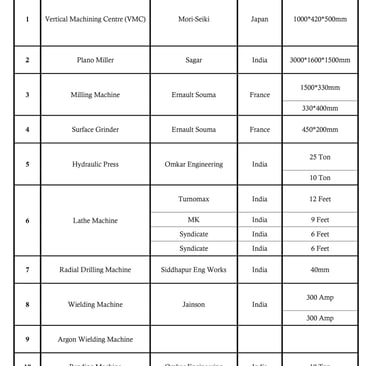 At Omkar Engineering India Pvt. Ltd., we specialize in delivering precision engineering solutions that meet the highest standards of quality and performance. Our extensive range of advanced machinery, including Vertical Machining Centres (VMCs), Plano Millers, Milling Machines with DRO, and Surface Grinders, allows us to undertake complex machining operations with exceptional accuracy and efficiency. We also offer a variety of other high-performance machines such as Hydraulic Presses, Lathe Machines, Radial Drilling Machines, Welding Machines, and Bending Machines. Each piece of equipment in our state-of-the-art facility is meticulously maintained to ensure reliable performance and superior results. Whether you need intricate surface finishes or robust heavy-duty machining, our team of skilled engineers and technicians is equipped to handle all your precision engineering requirements. Trust Omkar Engineering to transform your manufacturing processes with unparalleled expertise and cutting-edge technology.